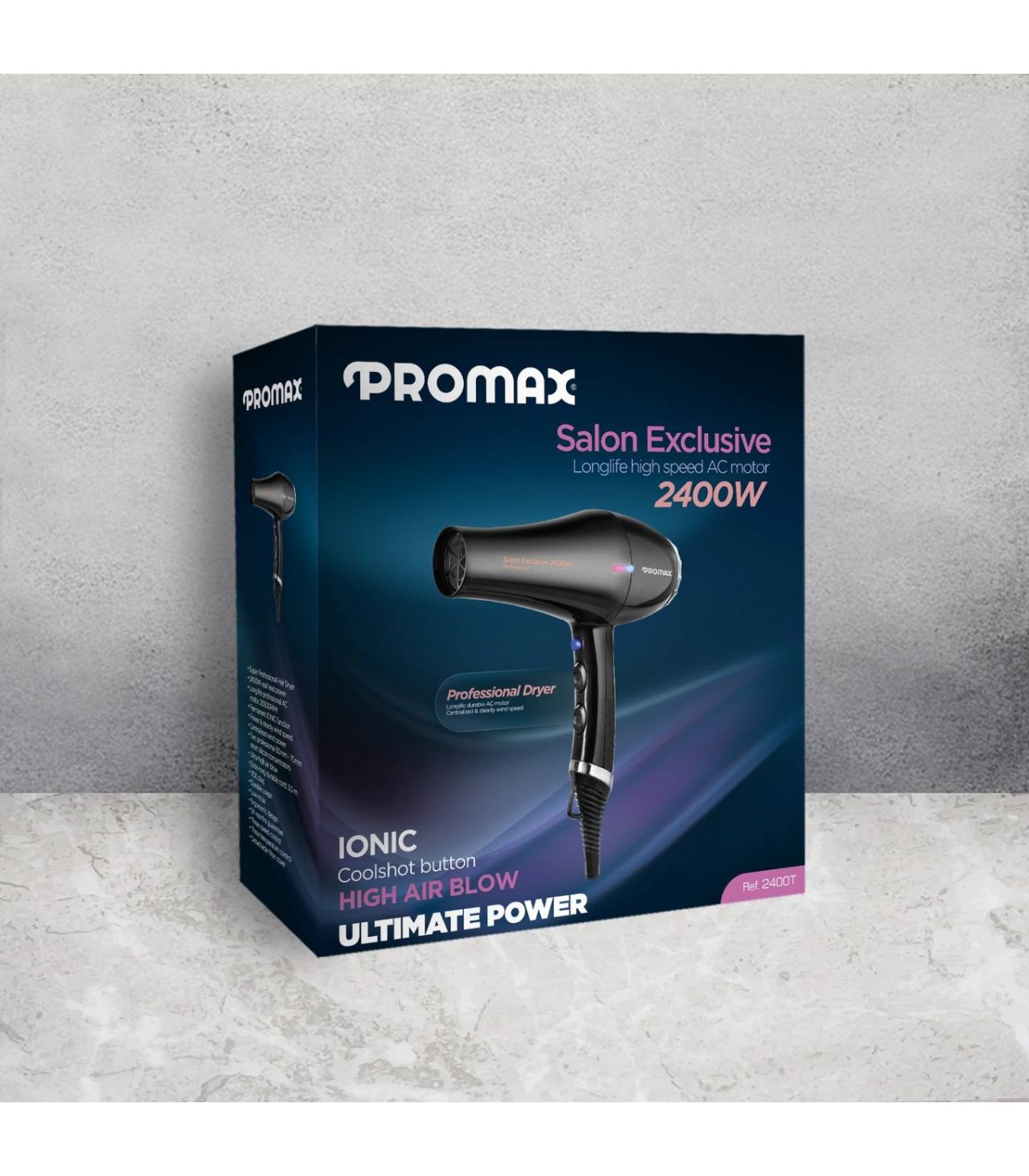 سشوار آیونیک پرومکس مدل 2400T دارای فناوری تولید یون منفی یکی از جدیدترین مدل های برند پرومکس می باشد. فناوری تولید یون منفی باعث میشود که موها زودتر خشک شوند و همچنین از وزشدن و آسیب پس از خشک شدن جلوگیری نماید که در نتیجه آن موهای شما درخشندگی طبیعی خود را حفظ مینماید.